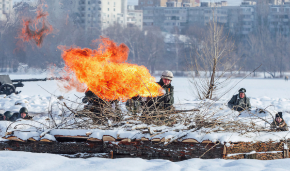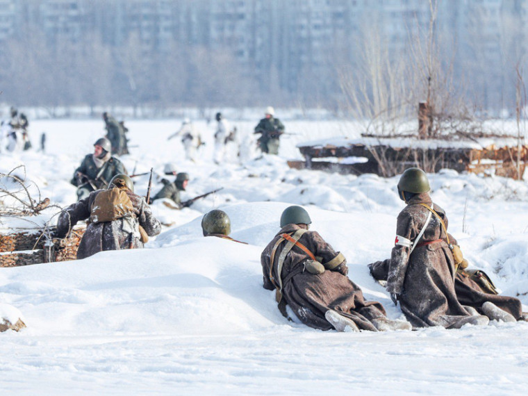 С помощью пиротехников зрителям показали танковый бой, в том числе дуэль Т-34 с немецким Т-III, завершившуюся поражением вражеской машины. Затем последовал залп «Катюши», атака с двух флангов и прорыв фронта. Именно 25 января 1943 года в наступление с востока перешла 60-я армия под командованием генерал-лейтенанта Ивана Черняховского, а с другой стороны город освобождала 40-я армия под командованием генерал-майора Кирилла Москаленко.