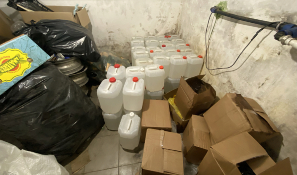 — около 50 пятилитровых канистр со спиртосодержащей жидкостью