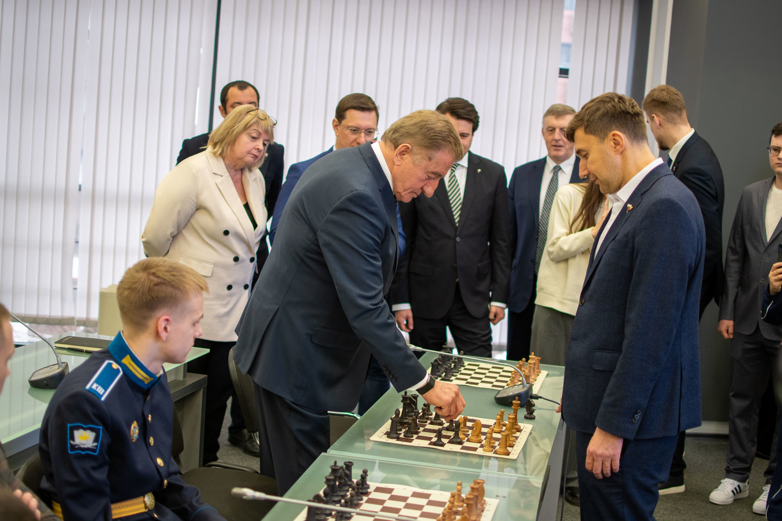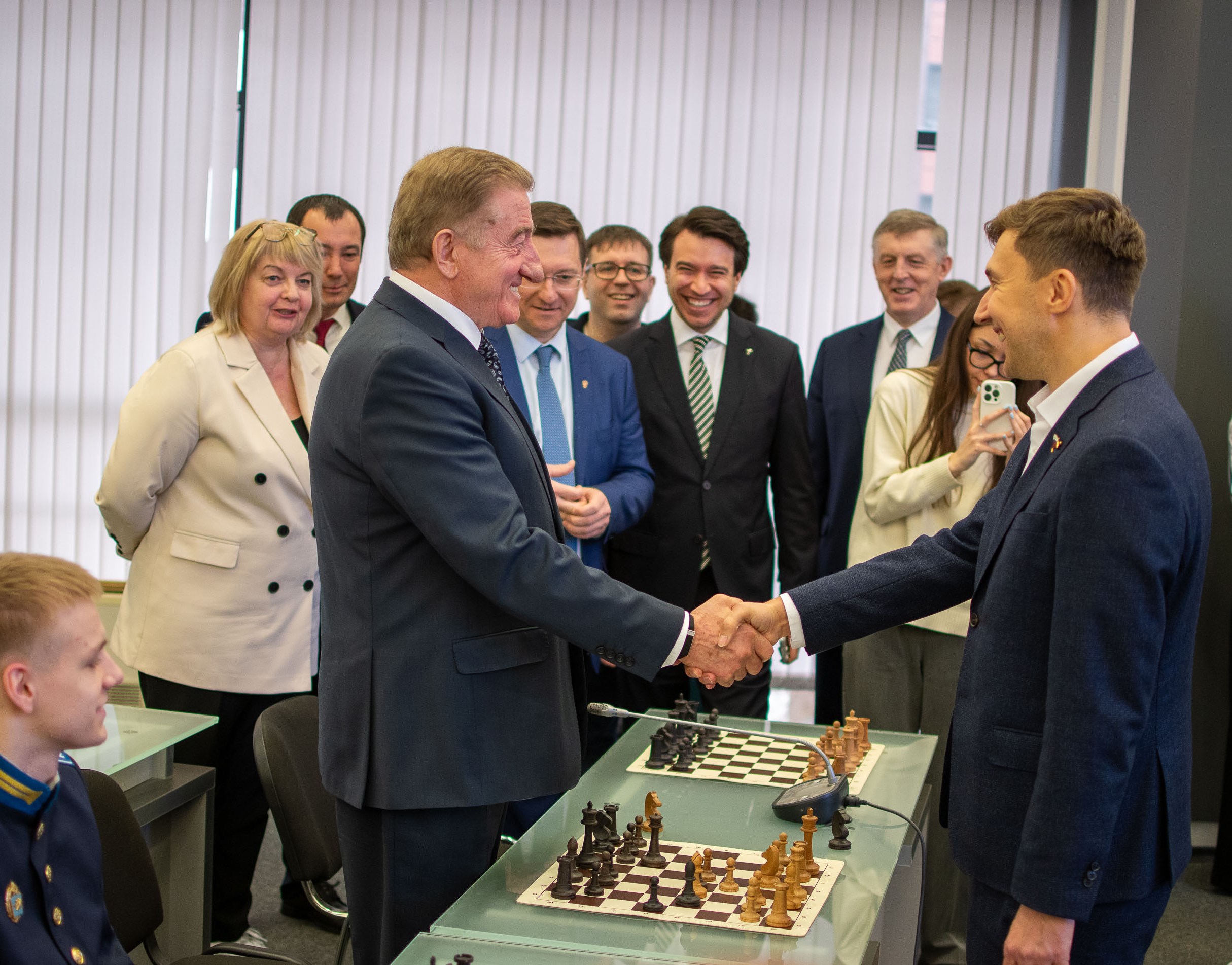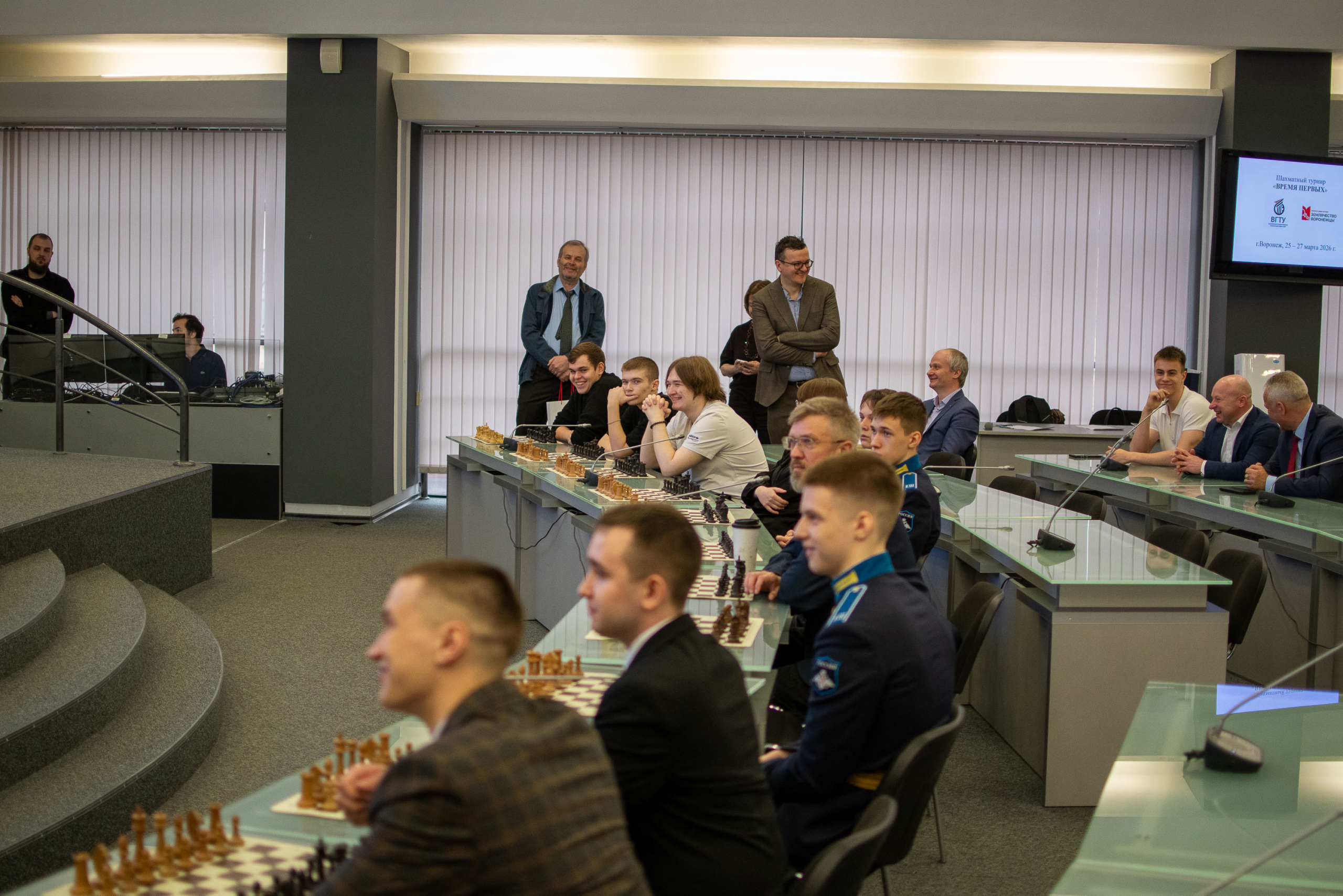 В Воронежском государственном техническом университете прошёл шахматный турнир «Время первых» в формате сеанса одновременной игры. Соперником участников стал сенатор Российской Федерации, международный гроссмейстер, чемпион мира по быстрым шахматам и обладатель Кубка мира Сергей Карякин.