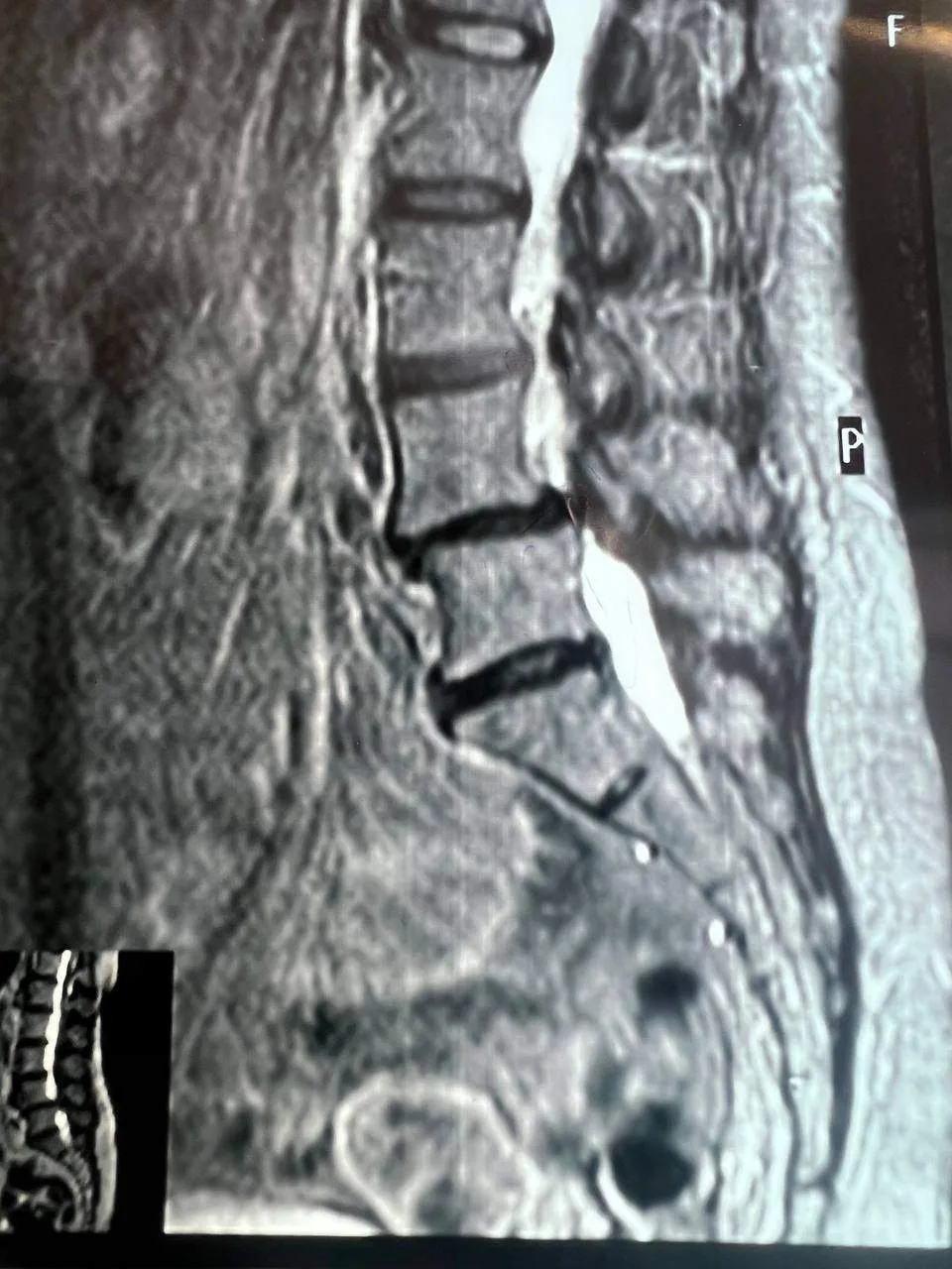 Обследование показало сразу несколько проблем, включая поражение межпозвоночных дисков и комбинированный стеноз позвоночного канала на уровне четвертого и пятого поясничных позвонков.