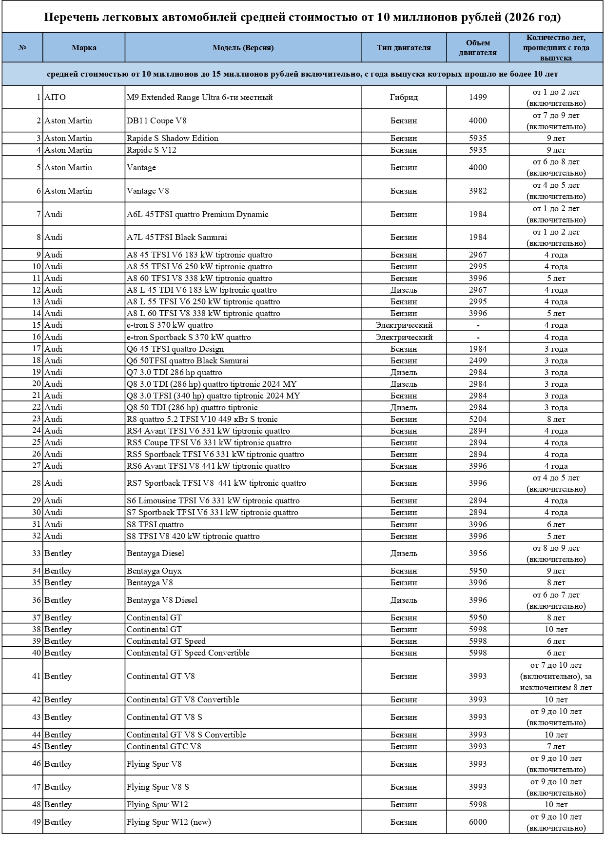 вчераМинпромторг России обновил перечень легковых автомобилей, к которым применяются повышающие коэффициенты при расчёте транспортного налога. В версии на 2026 год список вырос до 573 моделей — это на 18 больше, чем годом ранее, когда в нём было 555 позиций.