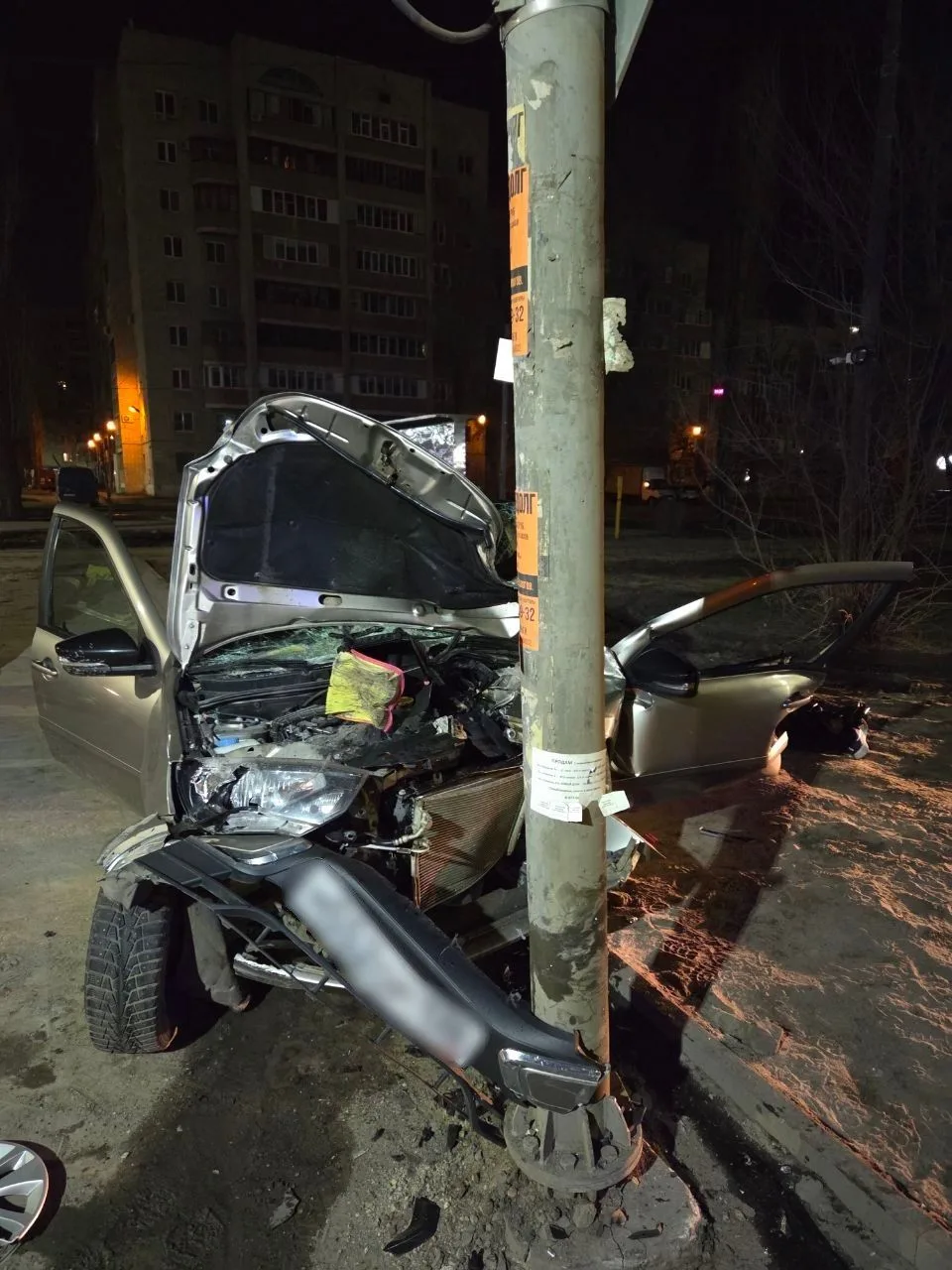 В Воронеже «Лада Гранта» ночью врезалась в столб: погиб водитель