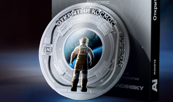 Монета выполнена из серебра 925 пробы. Дизайн реверса разработала нейросеть Сбера Kandinsky. В центре — образ космонавта, символизирующего стремление к новым открытиям и открытому взгляду на мир. В оформлении использованы глубокие синие и чёрные оттенки с яркими акцентами, которые формируют единую визуальную концепцию.