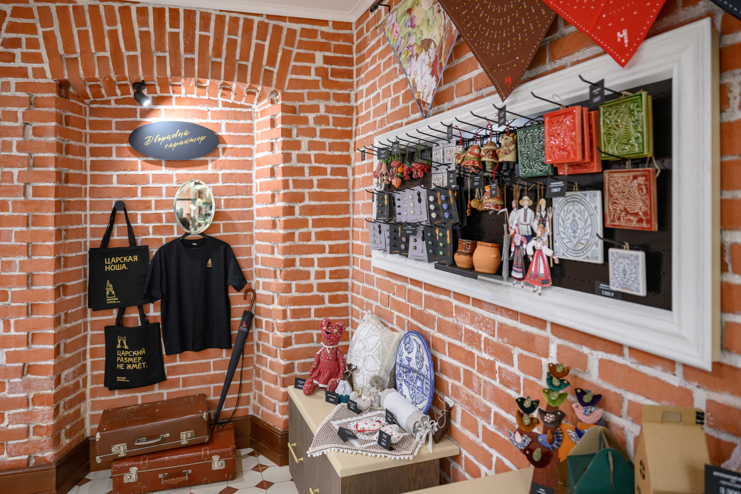 Губернатор также осмотрел сувенирное пространство, открытое в другом флигеле. Там представлены изделия местных мастеров — керамика, вазы и кувшины. Посетителям предлагают и сладости — конфеты ручной работы и монпасье, продолжая исторические традиции усадьбы.