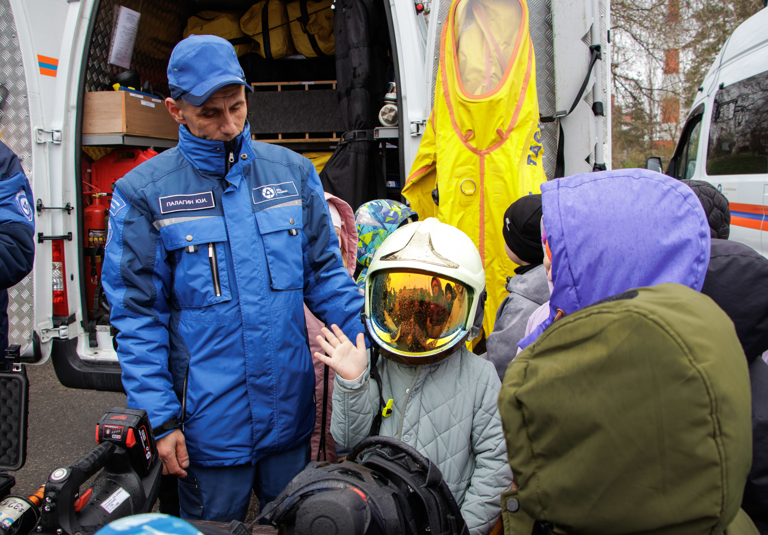 Дети и подростки с интересом примеряли защитные костюмы и каски, а также задавали вопросы специалистам.